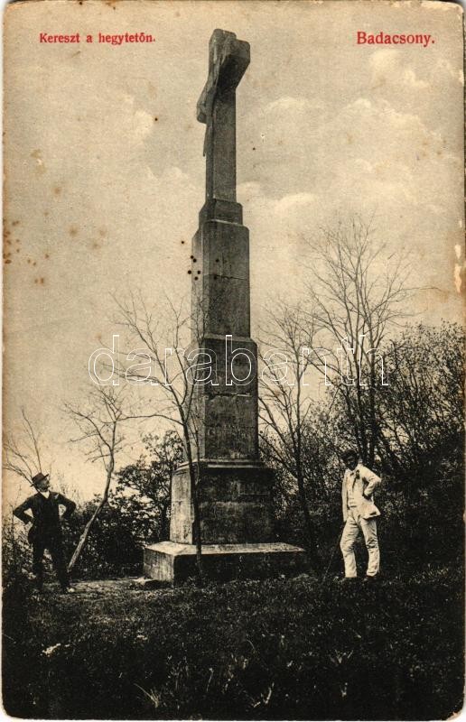 1911 Badacsony, Ranolder kereszt a hegytetőn. Kiadja Payer Antal (ázot...