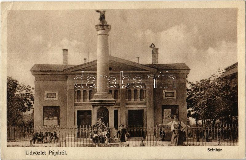 Pápa, Színház, Honvéd emlékmű turullal (EK)