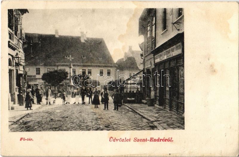 Szentendre, Fő tér, Pálfy János üzlete és saját kiadása (fl)