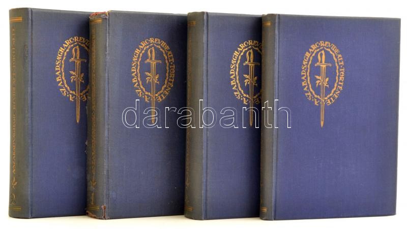 Description: Steier Lajos: A szabadságharc revideált története 1-4. kötet. Ismeretlen adalékok az 1848-49-iki szabadságharc történetéhez. 1. kötet: Görgey és Kossuth. 2. kötet: Az 1849-iki trónfosztás előzményei és következményei. 3-4. kötet: Haynau és Paskievics. I-II. kötet: Bp. [1925-1929]. Genius. Teljes! Kiadói aranyozott egészvászon-kötés, a borítókon kis kopásnyomokkal, az első kötet gerince kissé sérült.