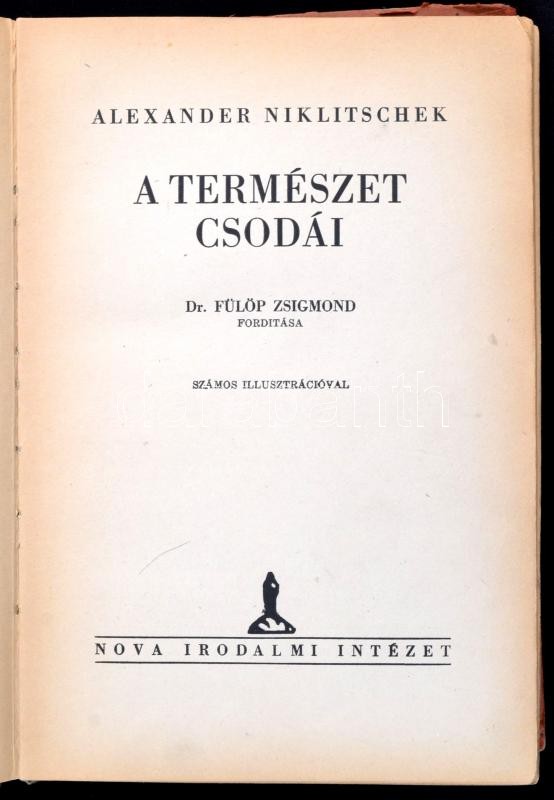 Description: Alexander Niklitschek: A matematika csodái. Fordította S. Beke Anna. Budapest, 1942, Nova Irodalmi Intézet, 254 p. Számos ábrával illusztrálva. Kiadói félvászon kötésben, kopott borítóval.