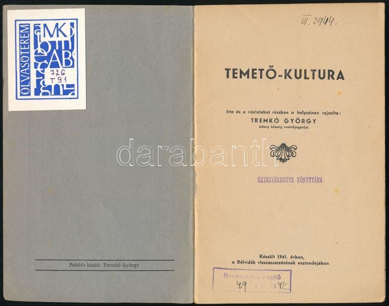 Tremkó György: Temető-kultura. Írta és a vázlatokat részben a helyszí... https://www.darabanth.com/en/351-Online-auction/351.0/Books/Books-Other-rarities~1000020/Tremko-Gyorgy-Temeto-kultura-Irta-es-a-vazlatokat-reszben-a-helyszinen-rajzolta--Bp~II1977215