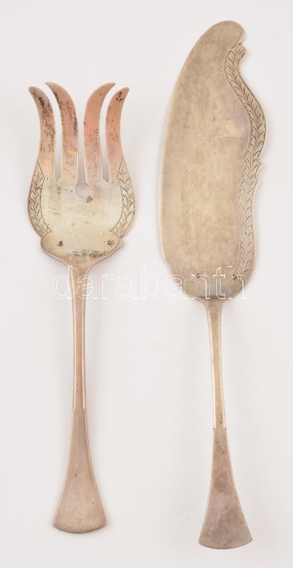 Jelzett ezüst tortalapát és villa 30 cm, 24 cm 256 g