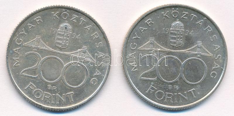 1994. 200Ft Ag "Deák" (2x) T:1- patina Adamo F13.1