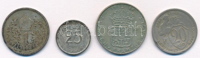 Mixed: Austria 1893. 1 Corona Ag "Franz Joseph" + Sweden 1957TS 25 Ore Ag + 1966U 1 Krona Ag + Soviet Union 1932. 20 Kopeks Cu-Ni C:XF,VF patina,ding