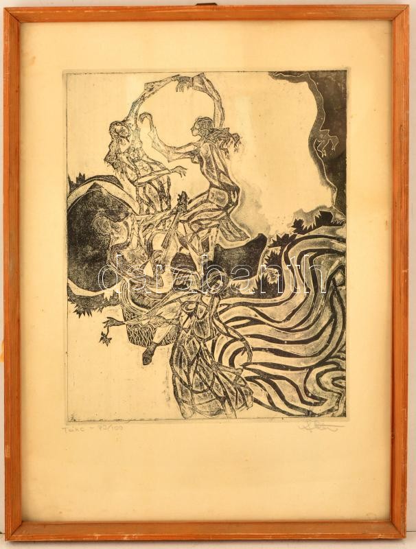 Stettner Béla (1928 - 1984): Tánc. Rézkarc, papír, jelzett, üvegezett...
