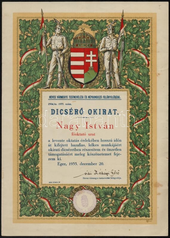 https://www.darabanth.com/en/352-Online-auction/352.0/Art-and-other-collectibles/Military~500026/1935-Dicsero-okirat-levente-oktatasban-reszt-vevo-tanar-reszere-25x35-cm~II2005130