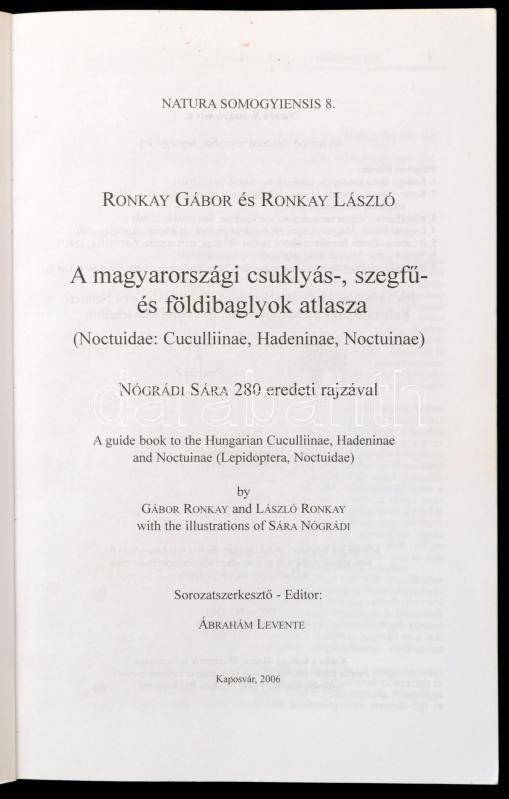 Ronkay Gábor-Ronkay László: A magyarországi csuklyás-, szegfű- és földibaglyok atlasza. (Noctuidae: Cuculliinae, Hadeninae, Nocutuinae.) Natura Somogyiensis 8. Nógrádi Sára rajzaival. Kaposvár, 2006, Somogy Megyei Múzeumok Igazgatósága. Kiadói papírkötés.