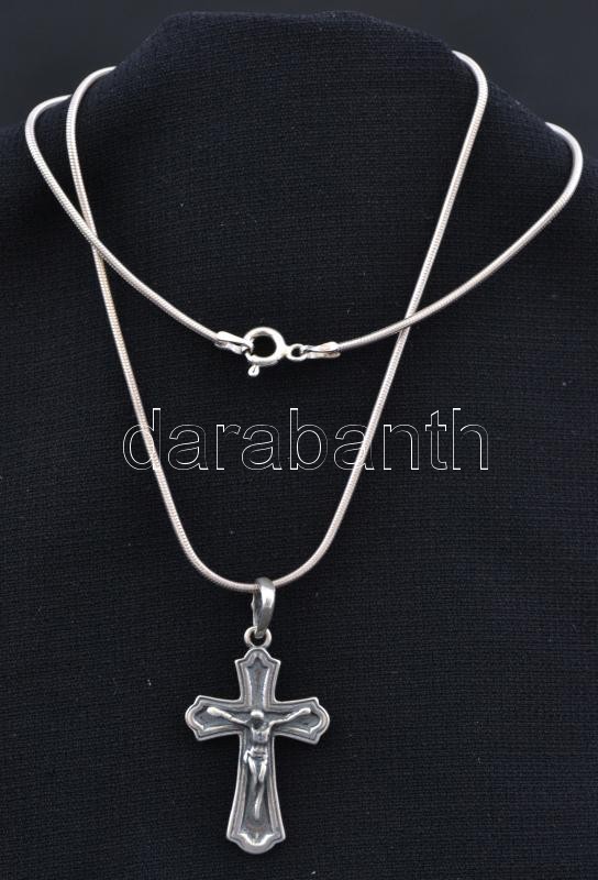 Ezüst(Ag) kígyó nyaklánc, korpuszos kereszt függővel, jelzett, h: 42,5 cm, 3,5×2 cm, nettó: 7,9 g