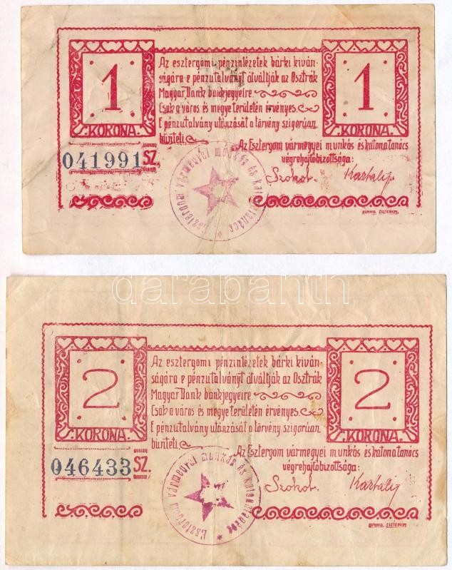 https://www.darabanth.com/en/352-Online-auction/352.0/Numismatics/Emergency-notes-and-coins-tokens~1500006/Esztergom-1919-1K-Esztergomi-Penzintezetek-Utalvanya-felulbelyegzett-TIII-fo--Adamo-EST-1~II2003041