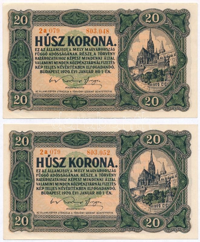 1920. 20K (2x) sorszámok közt pont, közeli sorszámok T:I-,II