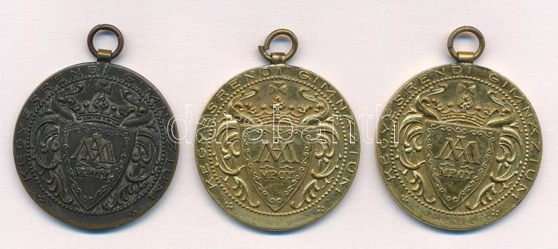 Berán Nándor (1889-1965) DN "Kegyesrendi Gimnázium" Br és aranyozott Br (3x) emlékérem füllel (30mm) T:2