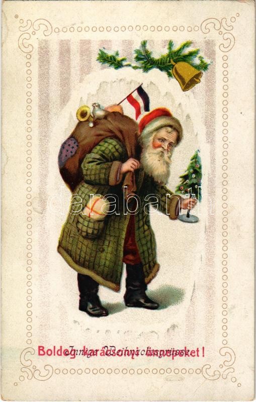 'Boldog karácsonyi ünnepeket!', üdvözlőlap / 'Innige Weinachtsgrüsse' / Christmas greeting card, Santa Claus, German flag, Ser. 16422. litho (fl)