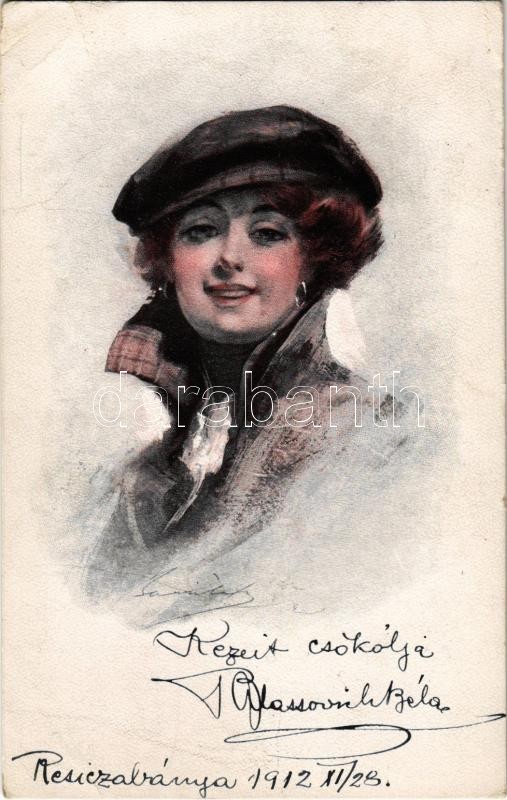 1912 Lady with hat, No. 15642 artist signed (EK)