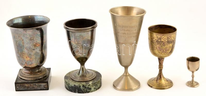 Különféle fém serlegek ( 5db), kettőnek talapzattal, egyiken horpadásokkal, m:6-16 cm