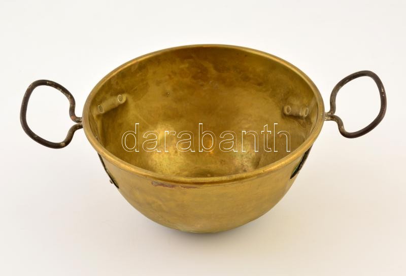 Réz keverőedény, fém fülekkel, horpadásokkal, d: 23 cm