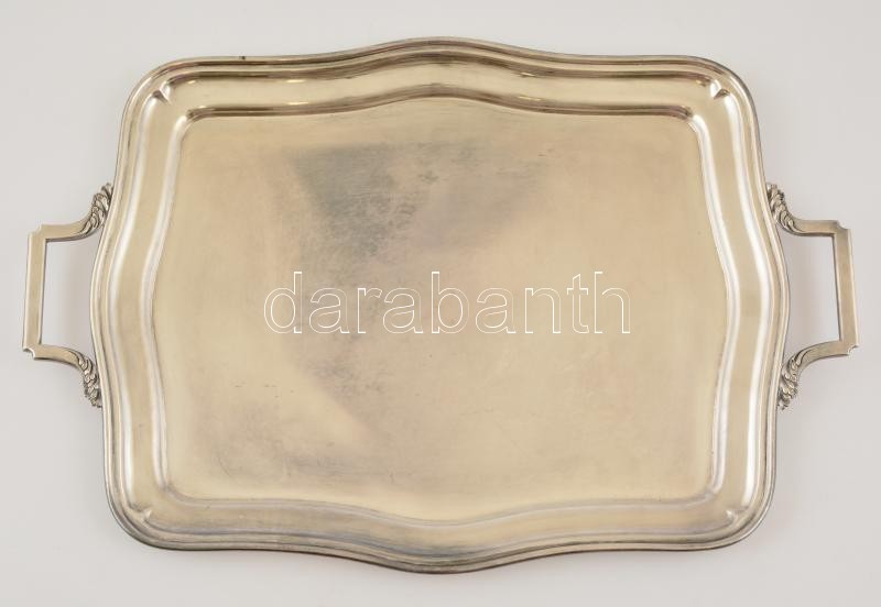 Wiskemann ezüstözött füles tálca, jelzett, 52×36 cm