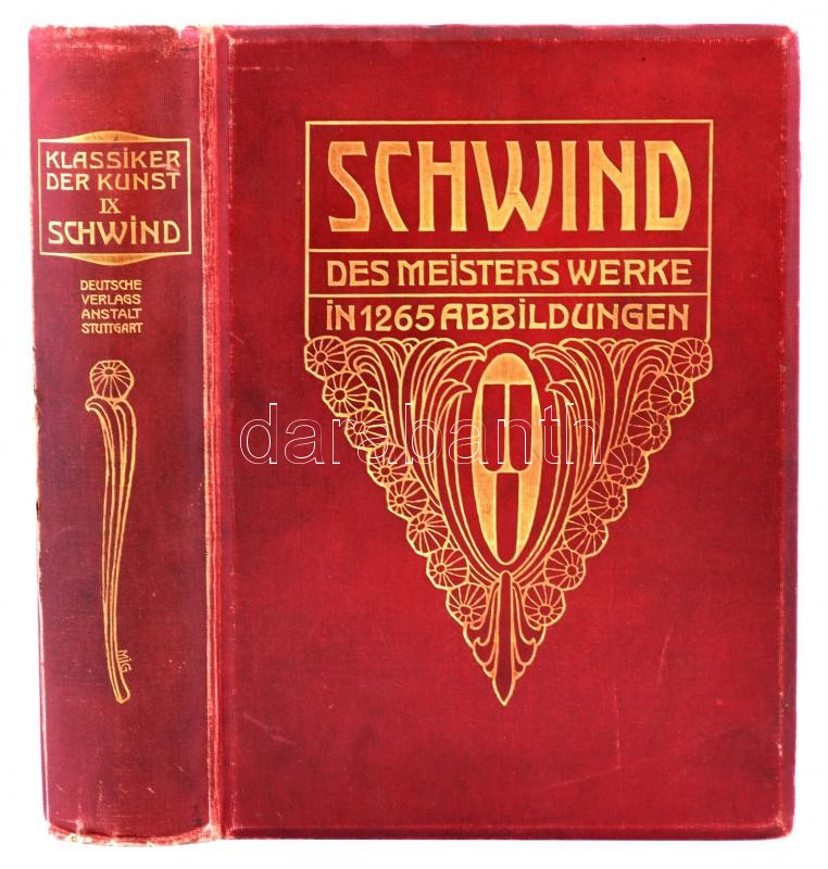 Moritz von Schwind. Des Meisters Werke in 1265 Abbildungen. Hrsg.: Otto Weigmann. Klassiker der Kunst IV. Stuttgart-Leipzig, 1906, Deutsche Verlags-Anstalt. Német nyelven. Kiadói aranyozott egészvászon-kötés, javÃtott kötéssel.