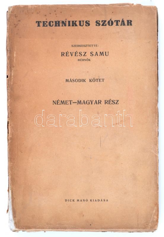 https://www.darabanth.com/en/353-Online-auction/353.0/Books/Books-Other-rarities~2000018/Technikus-szotar-Szerk-Revesz-Samu-2-kot-Nemet-magyar-resz-Bp-1926-Dick-Mano-Kic~II2013751