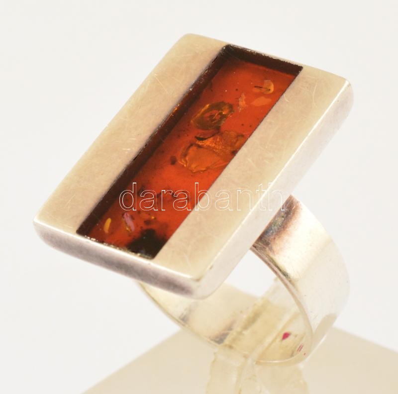 Ezüst(Ag) gyűrű borostyánnal, jelzett, méret: 57, bruttó: 7 g
