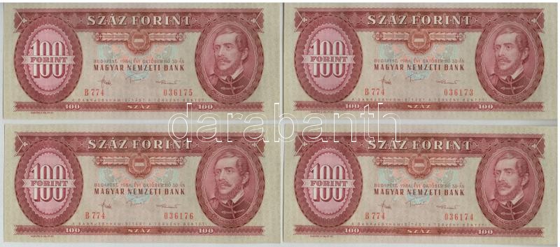 1984. 100Ft (4x) sorszámkövetők T:I,I-