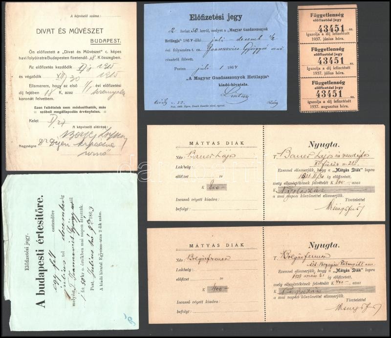 cca 1863-1937 6 db újság előfizetési értesítés