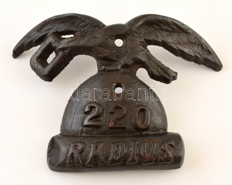 "220 radius", öntöttvas kályhadísz, 16×12 cm