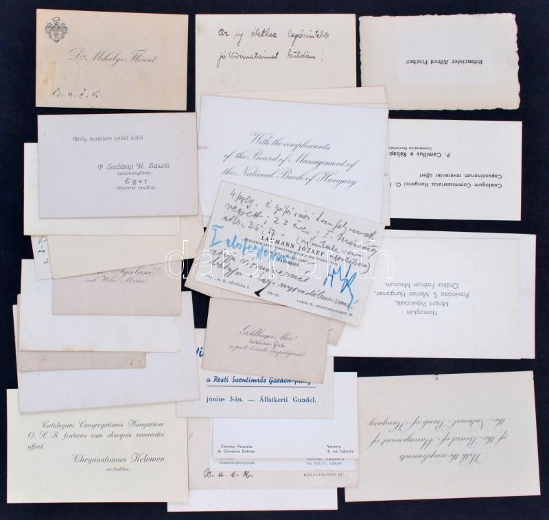 cca 1917-1934 26 db különféle névjegykártya, üdvözlőkártya, számos érd... https://www.darabanth.com/en/354-Online-auction/354.0/Art-and-other-collectibles/Historical-documents-manuscripts~500019/cca-1917-1934-26-db-kulonfele-nevjegykartya-udvozlokartya-szamos-erdekes-feljegyzessel~II2017463