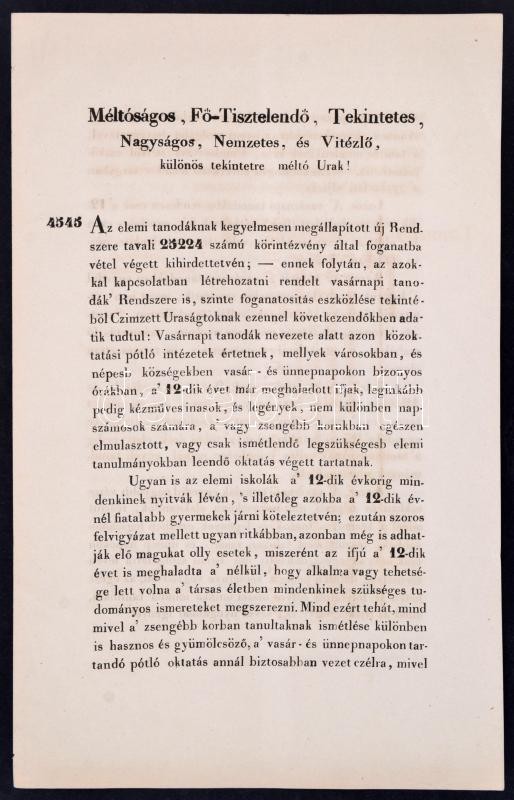 1846 Leirat a tankötelezettség felettiek számára felállított vasárnapi... https://www.darabanth.com/en/354-Online-auction/354.0/Art-and-other-collectibles/Printed-Materials~500030/1846-Leirat-a-tankotelezettseg-felettiek-szamara-felallitott-vasarnapi-tanodakkal-kapcsolatb~II2024209