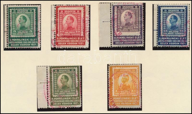 1921 6 különféle eszéki szokol alátétbélyeg jugoszláv bélyegekkel és a...