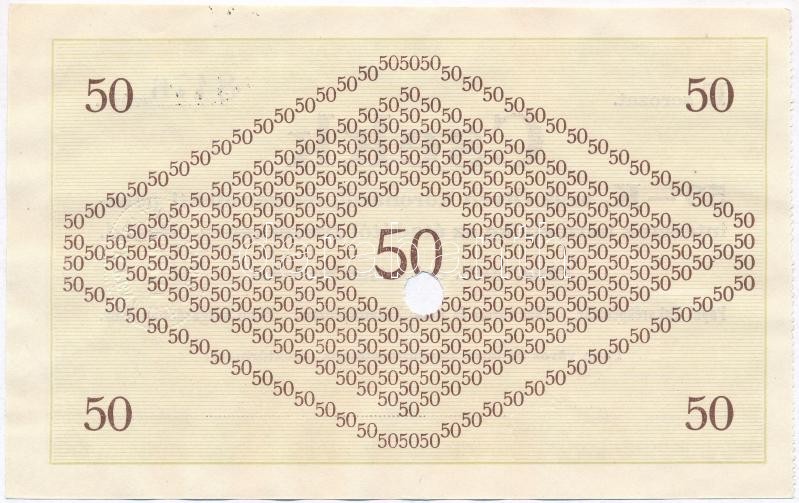 Pápa 1919. május 8. "Pápai csekk" 50K lyukasztással érvénytelenítve és ovális szárazbélyegzővel, E sorozat T:I-, halvány aláírás