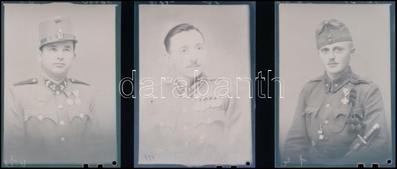 cca 1940 Mosonyi Antalné (?-?), (Marika fotó) kiskunfélegyházi műtermében, katonákról készült 13 db vintage síkfilm negatív, 10x15 cm és 6x9 cm között