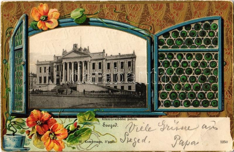 1905 Szeged, Közművelődési palota. Szecessziós, dombornyomott, litho. H. Kampmann / Art Nouveau, floral, litho (EB)