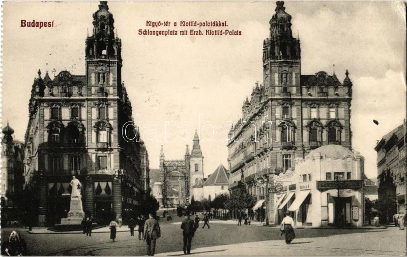 https://www.darabanth.com/en/354-Online-auction/354.0/Postcards/Hungary~1000005/1910-Budapest-V-Kigyo-ter-Klotild-palotak-Schaffer-Skrivan-Ferenc-uzlete-Erzsebet-hid-C3~II2023799