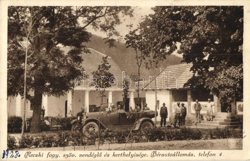 1928 Recsk, Fogyasztási szövetkezeti vendéglő és kerthelyisége, étterem, bérautóállomás, automobil