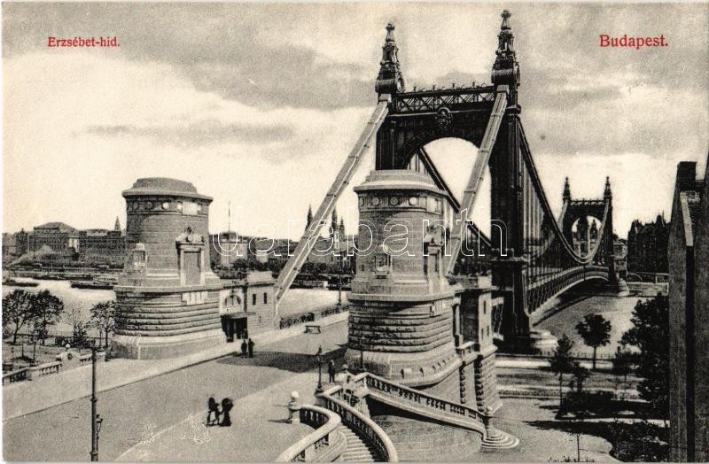 Budapest, Erzsébet híd. Divald Károly 1189-1908.