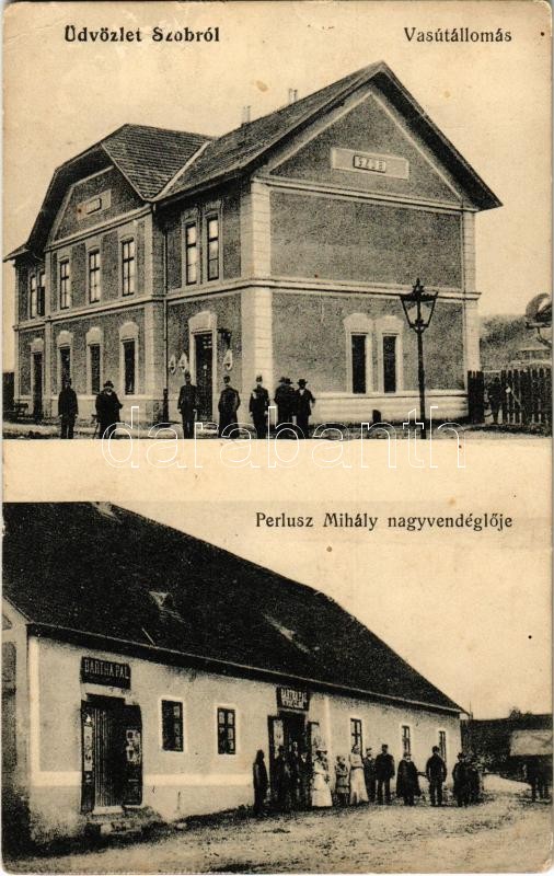 Szob, vasútállomás, Perlusz Mihály nagyvendéglője, Bartha Pál üzlete ...