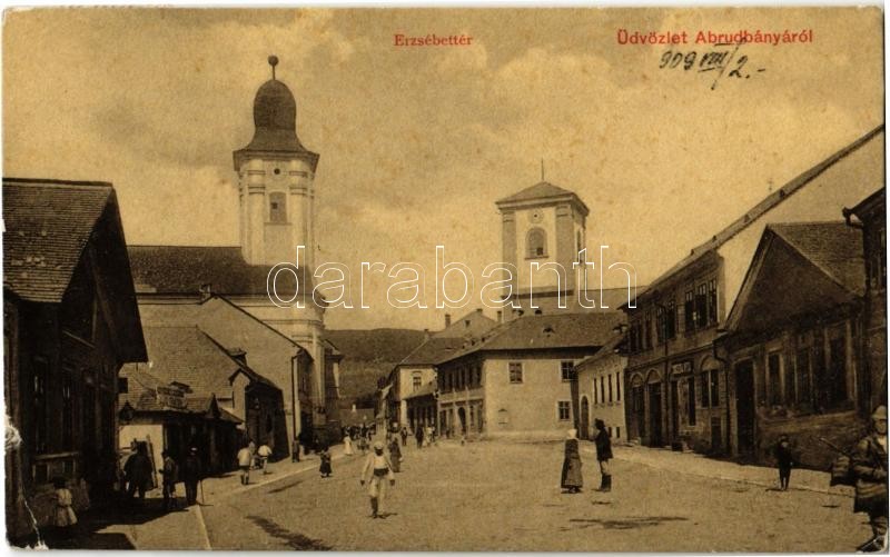 1909 Abrudbánya, Abrud; Erzsébet tér, Unitárius templom, Katolikus tem... https://www.darabanth.com/en/354-Online-auction/354.0/Postcards/Transylvania~1000006/1909-Abrudbanya-Abrud-Erzsebet-ter-Unitarius-templom-Katolikus-templom-uzletek-W-L-3213~II2022252