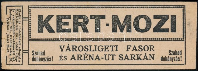 cca 1925 Bp., Kertmozi a Városligeti fasor és az Aréna út sarkán, reklámcédula