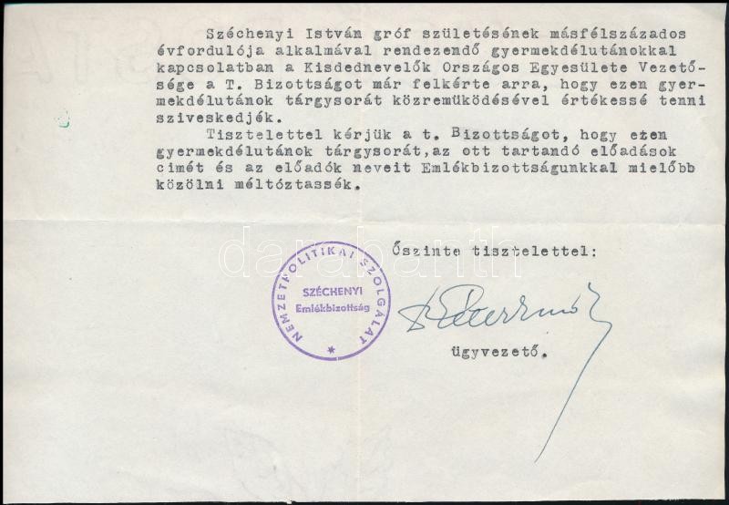 1941 Nemzetpolitikai Szolgálat Széchenyi Emlékbizottságának levele a K...