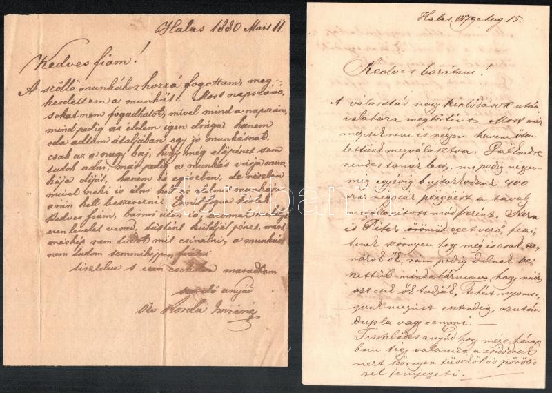 1877-1882 9 db Kiskunhalasról írt családi levél, számos érdekességgel ...