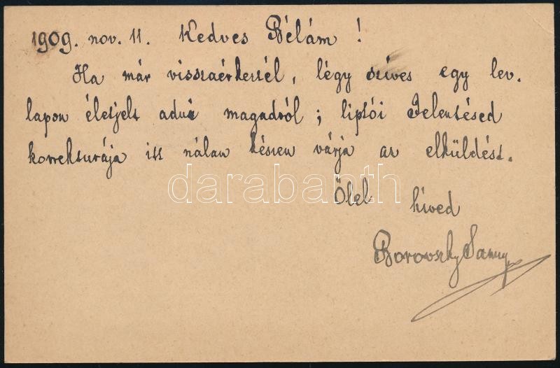 1909 Borovszky Samu (1860-1912) történész saját kézzel írt levelezőlap...