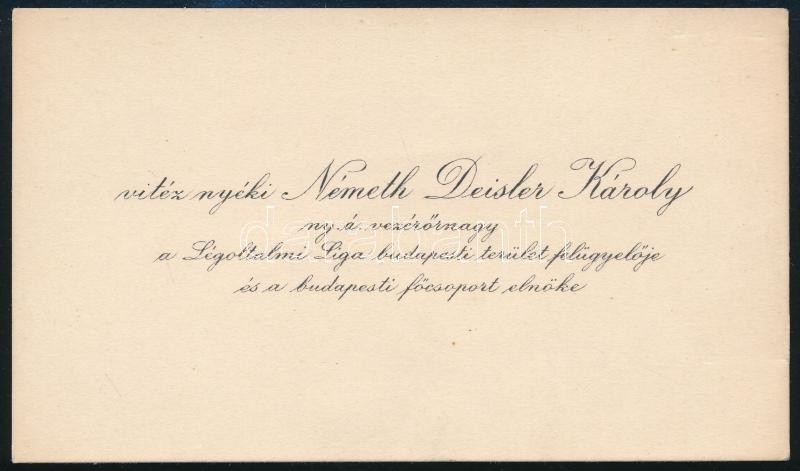cca 1930 vitéz nyéki Németh Deisler Károly ny. á. vezérőrnagy névjegye