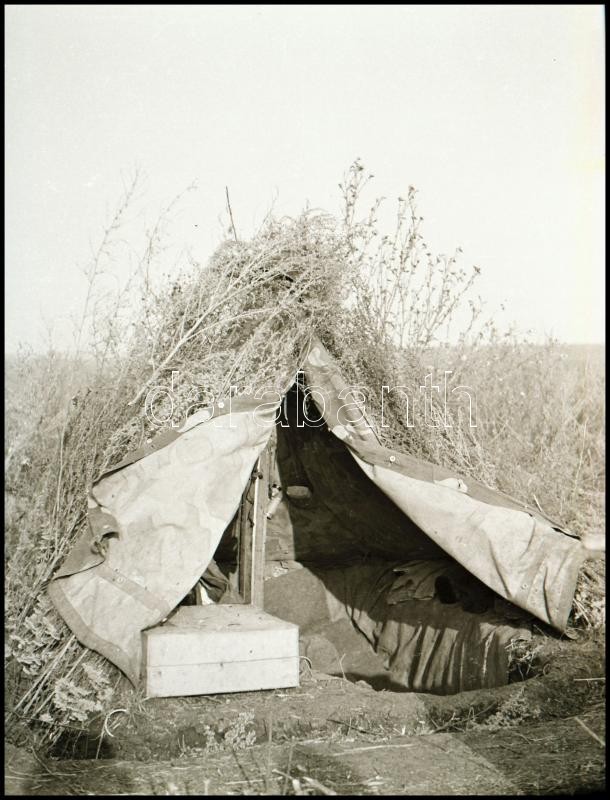 Description: cca 1942 Thöresz Dezső (1902-1963) békéscsabai gyógyszerész és fotóművész szolgálatot teljesített egy sebesültszállító vonaton Bp. és Kijev között, és elkísérte a 2. magyar hadsereg kivonulását is a Don-kanyarhoz. Hagyatékában fennmaradtak az általa, út közben készített felvételek. Ebben a tételben 13 db vintage negatív szerepel, 6x6 cm és 4,5x6 cm