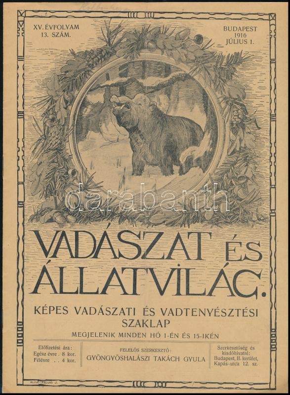 1916 A Vadászat és Állatvilág, képes vadászati és vadtenyésztési szaklap XV. évfolyamának 13. száma