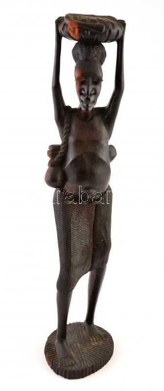 Afrikai bennszülött, faragott fa, javított (nyakán repedéssel) m: 58 cm