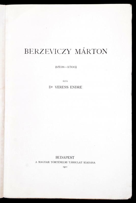 Bp.,... https://www.darabanth.com/en/355-Online-auction/355.0/Books/Books-History~1500005/Veress-Endre-Berzeviczy-Marton-erdelyi-kanczellar-1538-1596-Bp-1911-Magyar-Tortenelmi-~II2031088