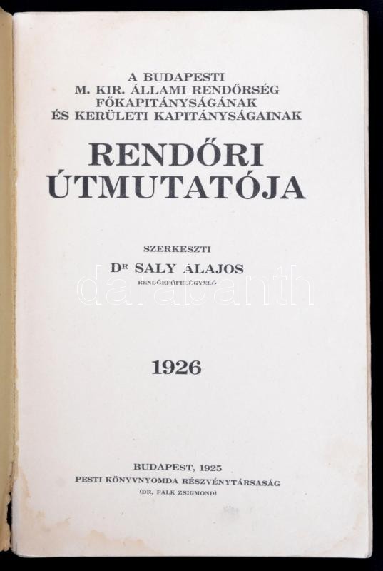 Saly Lajos (szerk.): A budapesti m. kir állami rnedőrség főkapitányság... https://www.darabanth.com/en/355-Online-auction/355.0/Books/Books-Military~1500006/Saly-Lajos-szerk-A-budapesti-m-kir-allami-rnedorseg-fokapitanysagnak-es-keruleti-kapitC3~II2026009