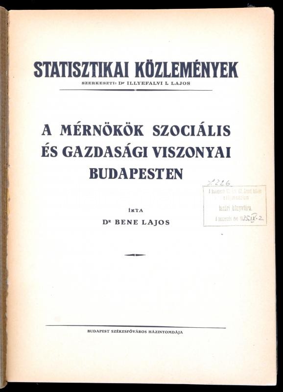 Bene Lajos: A mérnökök szociális és gazdasági viszonyai Budapesten. Bp.. é.n. KSH kiadói papírboríték