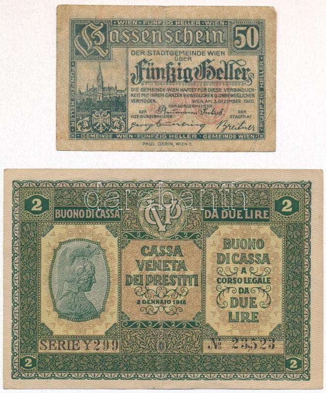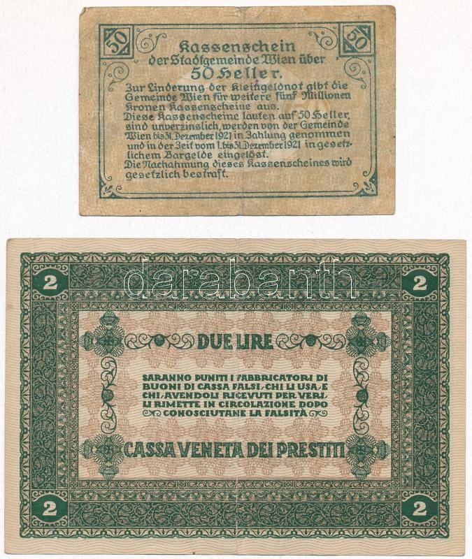 https://www.darabanth.com/en/355-Online-auction/355.0/Numismatics/Worldwide-banknotes~2500012/Vegyes-Olaszorszag-Velence-Osztrak-magyar-megszallas-1918-2L-plus-Ausztria-Becs-1920-50h-~II2030813